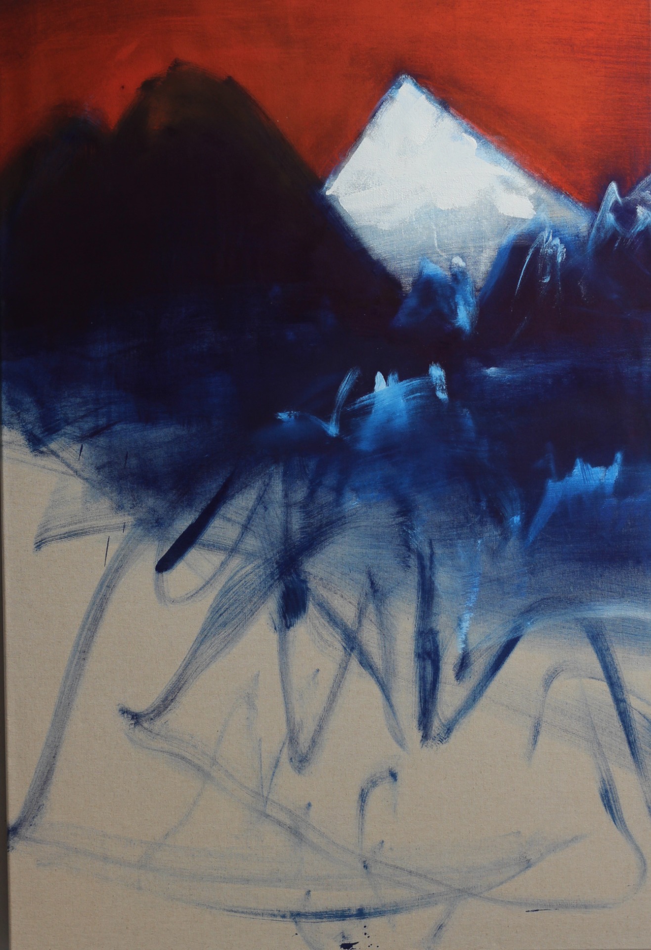 La couleur de la toile s'apparente à la couleur du corps : la toile renvoie donc en même temps au plein et au vide.